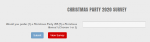 The options are (1) Christmas Party or (2) Christmas Bonus.