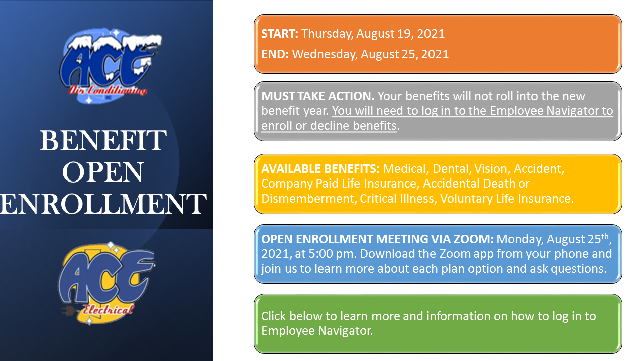 Ace Air Conditioning Employee Health Benefits Open Enrollment